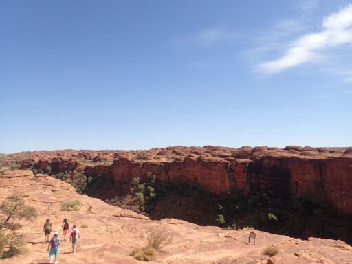 次にキングスキャニオンを訪れました。キングスキャニオンは100メートル以上もある垂直な崖が印象的です。ここではキングスキャニオンの谷底を歩くクリーク・ウォークと、3、4時間かけて断崖の上を歩くキャニオン・リム・ウォークの2つの散策路があります。私はキャニオン・リム・ウォークに参加しました。