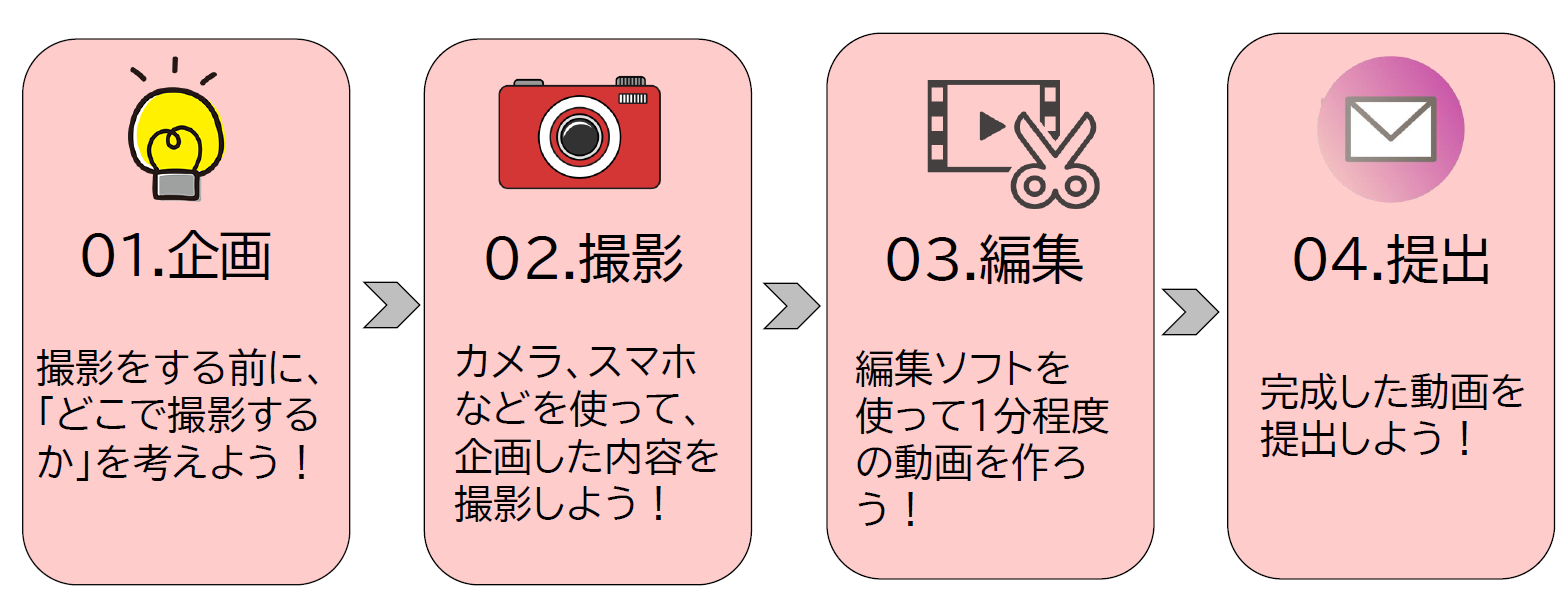 ご応募の作品は、公式YouTube、公式Instagram 等の広報媒体に掲載し、 広く閲覧いただく可能性があるので予めご承知おきください。 作品の一部編集(字幕・ナレーションの追加、音楽の変更等)をお願いする場合がありますので、 応募作品及び編集前データは提出前に必ず保管しておいてください。