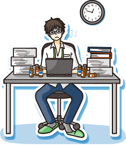 今日もまだまだ仕事が終わらない! 仕事が多いのか? ボクが遅いのか? 仕事はキライじゃないけど、毎日が同じことの繰り返しに思えてきて、そろそろ疲れてきましたよ。