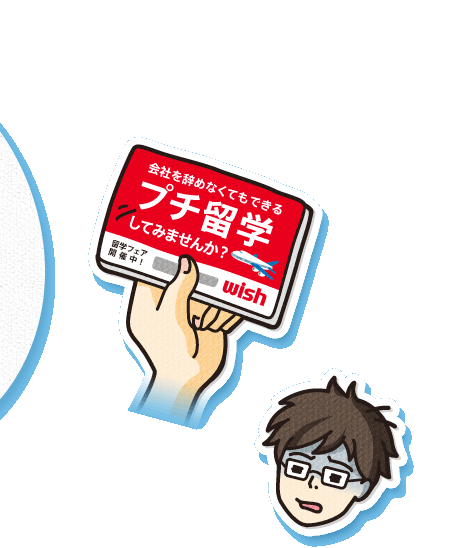 留学の宣伝みたいですね。興味がないわけではないですが、ボクには仕事もありますし、留学なんて行けませんよ。え? プチ留学ですか? 会社を辞めなくても行けるの?